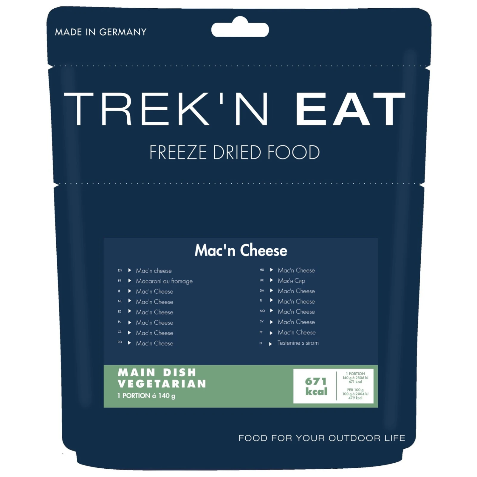 A Mac & Cheese a Trek’n Eat márkától háromféle sajttal ideális választás a tartalmas és krémes ételek kedvelőinek. Az alapja tojásos tészta, amelyet finom sajtos mártás borít gouda, edami és tejszín felhasználásával. Az ételt saját, önállóan megálló tasakjában készítheted el, majd abból közvetlenül el is fogyaszthatod.