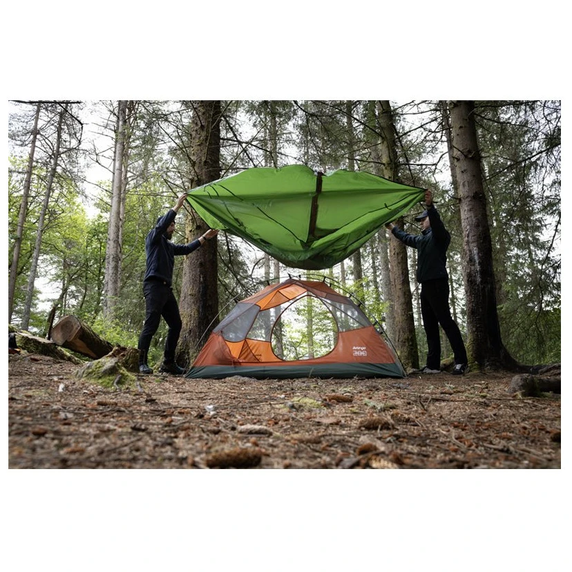További praktikus funkciók közé tartoznak a hálós zsebek az apró tárgyak tárolására, valamint a pántokkal ellátott kompressziós huzat, amely lehetővé teszi a sátor egyszerű csomagolását és tárolását.