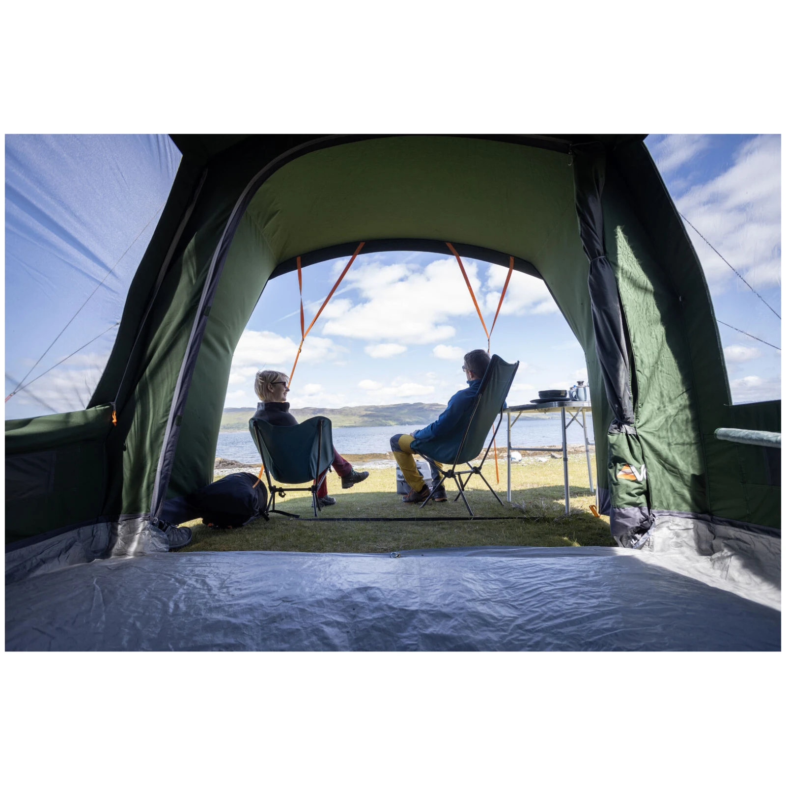 A tágas, szinte függőleges falakkal rendelkező kialakítás lehetővé teszi a belső tér teljes kihasználását, így könnyedén elhelyezhet székeket, asztalt vagy tárolódobozokat. Az előre csatlakoztatott első előtér további életteret kínál, ideális esőben vagy játék közbeni pihenéshez. A sátor belső tere világos és szellős a Diamond Clear ablakoknak köszönhetően, amelyek maximalizálják a természetes fényt.