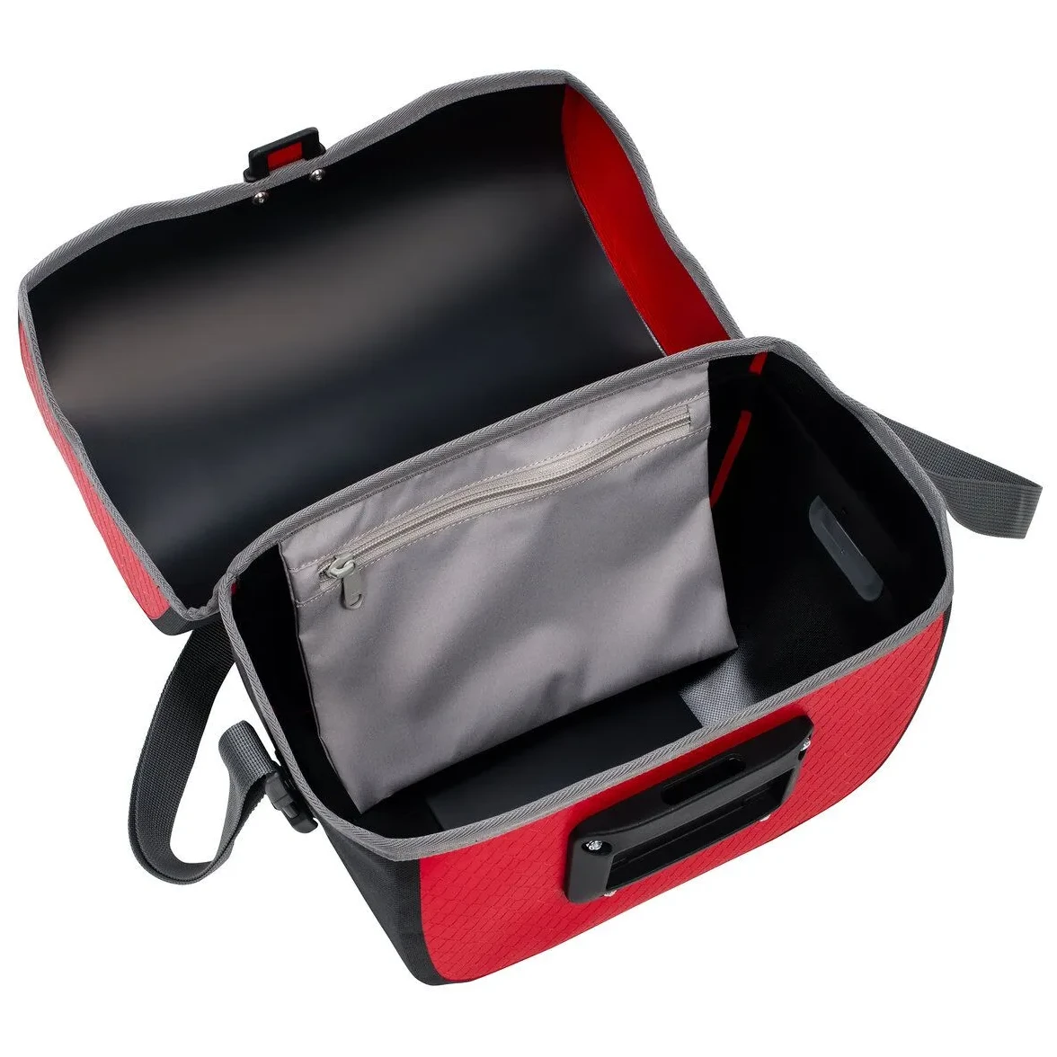 A KLICKfix adapter nagyon gyors, de biztonságos rögzítést tesz lehetővé. Ezt az adaptert a kerék típusától függően külön kell megvásárolni. A táska levehető vállpánttal rendelkezik, így gyorsan leveheti a kerékpárról, és praktikus kézipoggyászként használhatja.