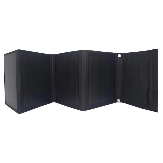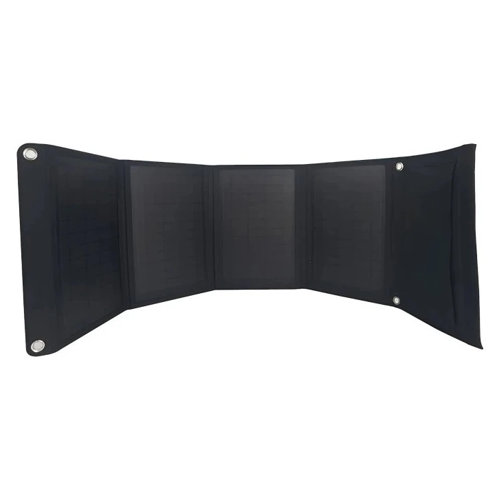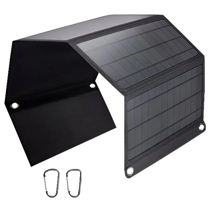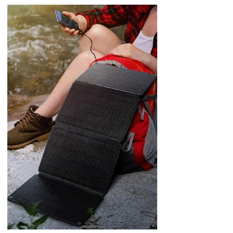A panel vízálló poliészter tokkal van ellátva, fülekkel a könnyű rögzítéshez (hátizsák, kerékpár, sátor) és automatikus töltésindítás funkcióval a készülék csatlakoztatása után. A három USB-port lehetővé teszi a legtöbb eszköz töltését, beleértve az Apple, Samsung, Huawei, Xiaomi és más eszközöket.