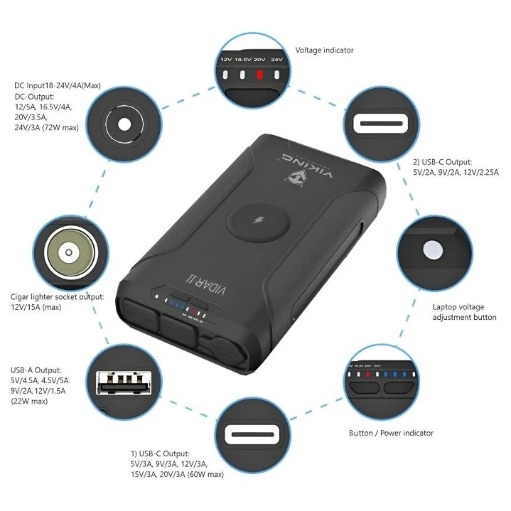 A Viking Technology által gyártott VIDAR II kültéri powerbank egy praktikus és tartós powerbank, amely egyesíti a nagy kapacitást, a teljesítményt és a sokoldalú csatlakozási lehetőségeket. A robusztus kialakítás, a beépített LED-lámpa és a portok széles választéka ideális társává teszi a kempingezéshez, a terepen végzett munkához és a mindennapi használathoz.
