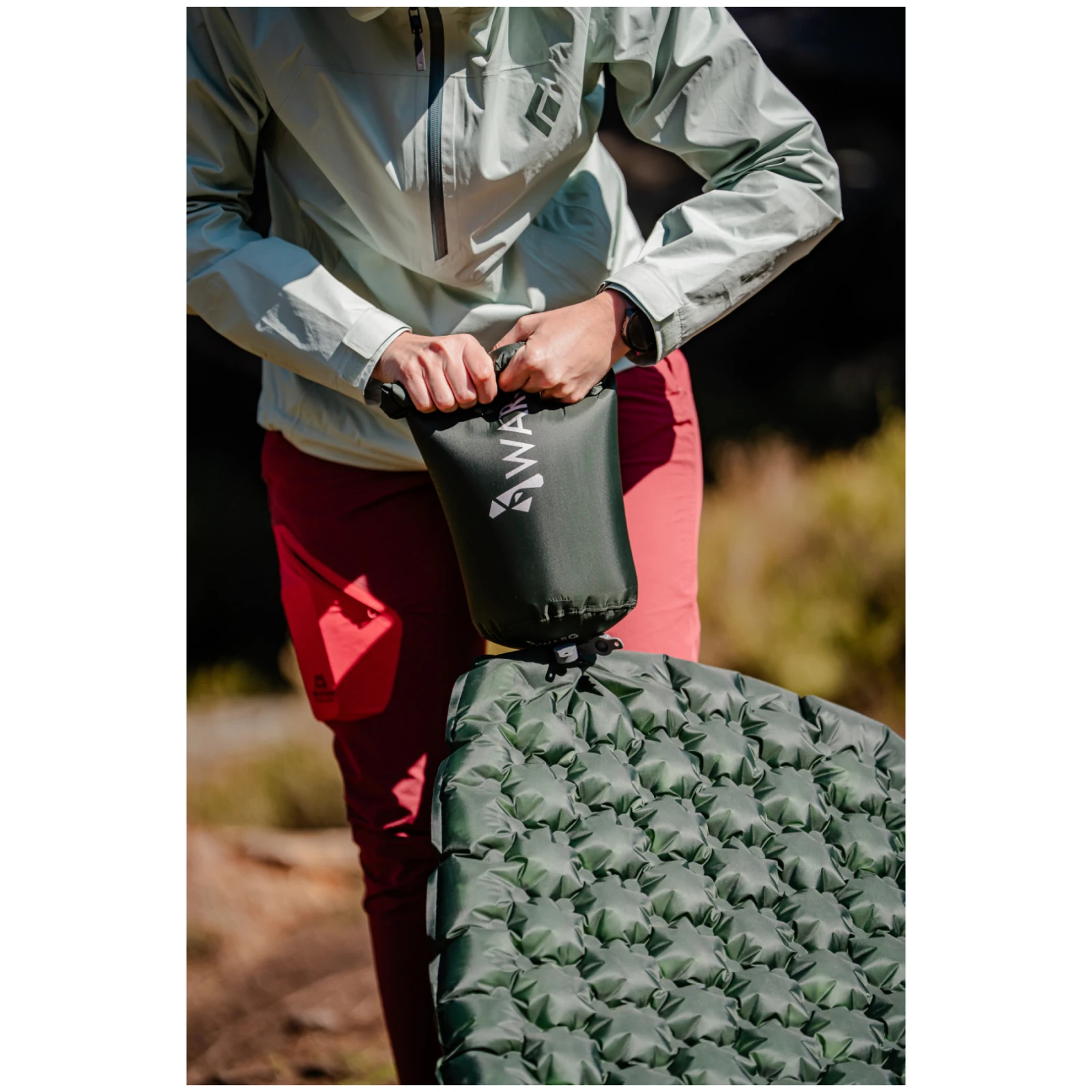 A szőnyeg kevés helyet foglal a hátizsákban, különböző méretűre csomagolható, könnyű, nagyon kényelmes, eddig 5°C körüli hőmérsékleten tesztelték, teljesen megfelelő, nagy előnye a csomagolás, amely felfújható zsákocskaként szolgál, nem kell gondolni a pumpa becsomagolásának szükségességére...