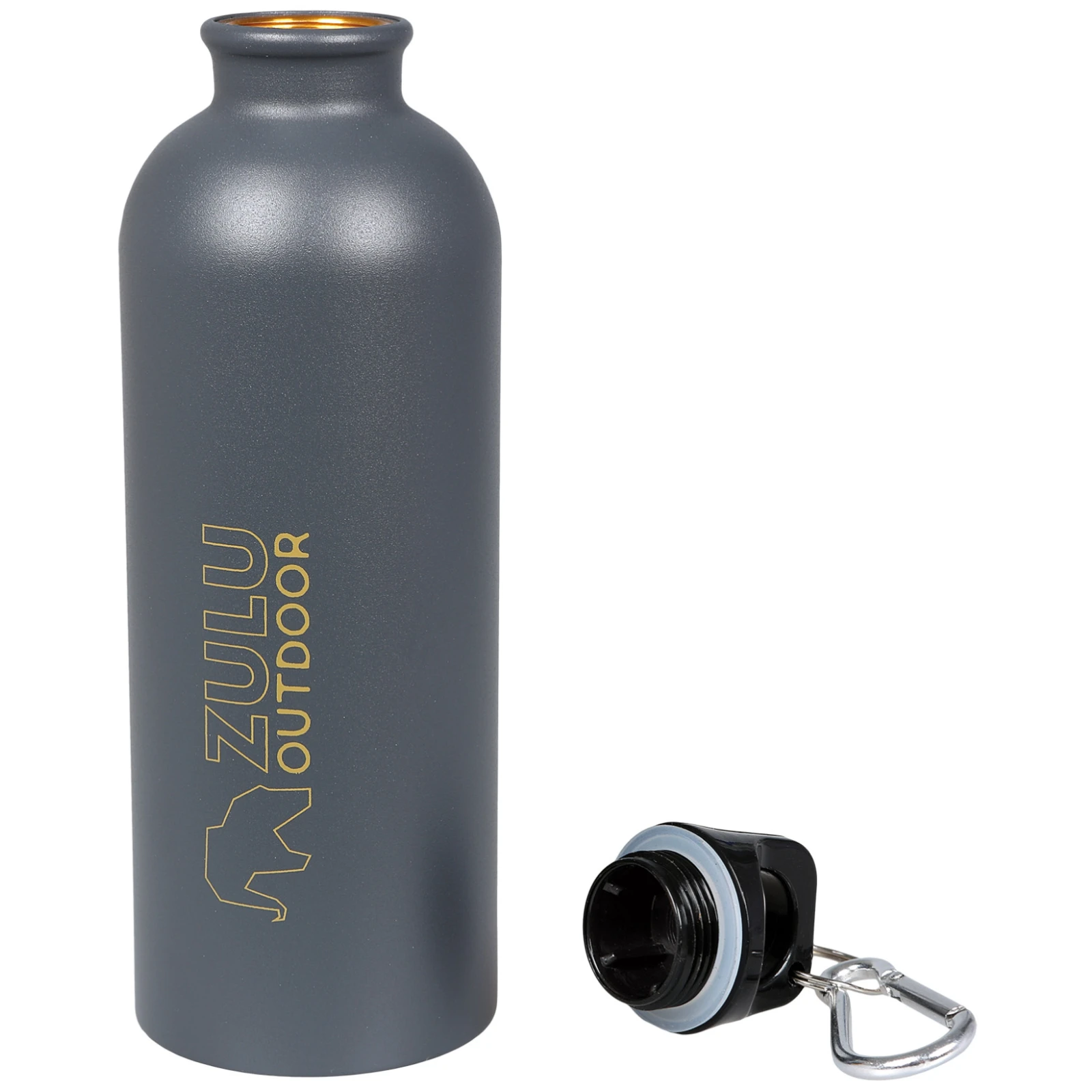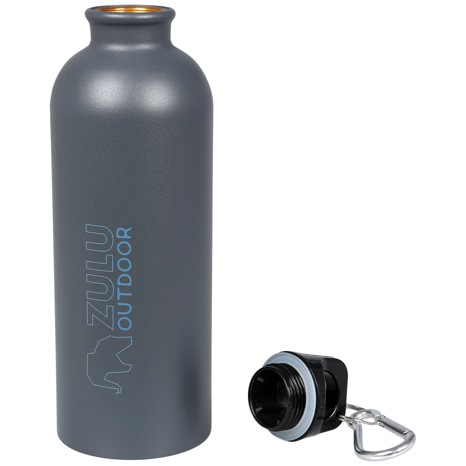 A kulacshoz tartozik egy BPA-mentes csavaros kupak, amely biztosítja a biztonságos zárást. Praktikus részlet a kupakon található karabiner is, amellyel a kulacs könnyen rögzíthető a hátizsákhoz vagy a felszereléshez.